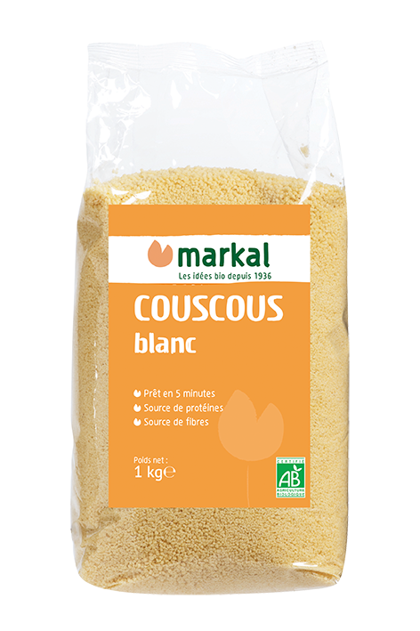 Verser le couscous dans un saladier et ajouter le même volume d’eau bouillante. Couvrir et laisser gonfler 5 min. Détacher les grains avec une fourchette. Assaisonner selon son goût. Le couscous blanc sera idéal pour réaliser la recette traditionnelle du couscous en ajoutant légumes, viandes et épices de votre choix. Il sera également délicieux en accompagnement de tous vos légumes et pour la conception de taboulé. A conserver dans un endroit frais, sec et à l’abri de la lumière.