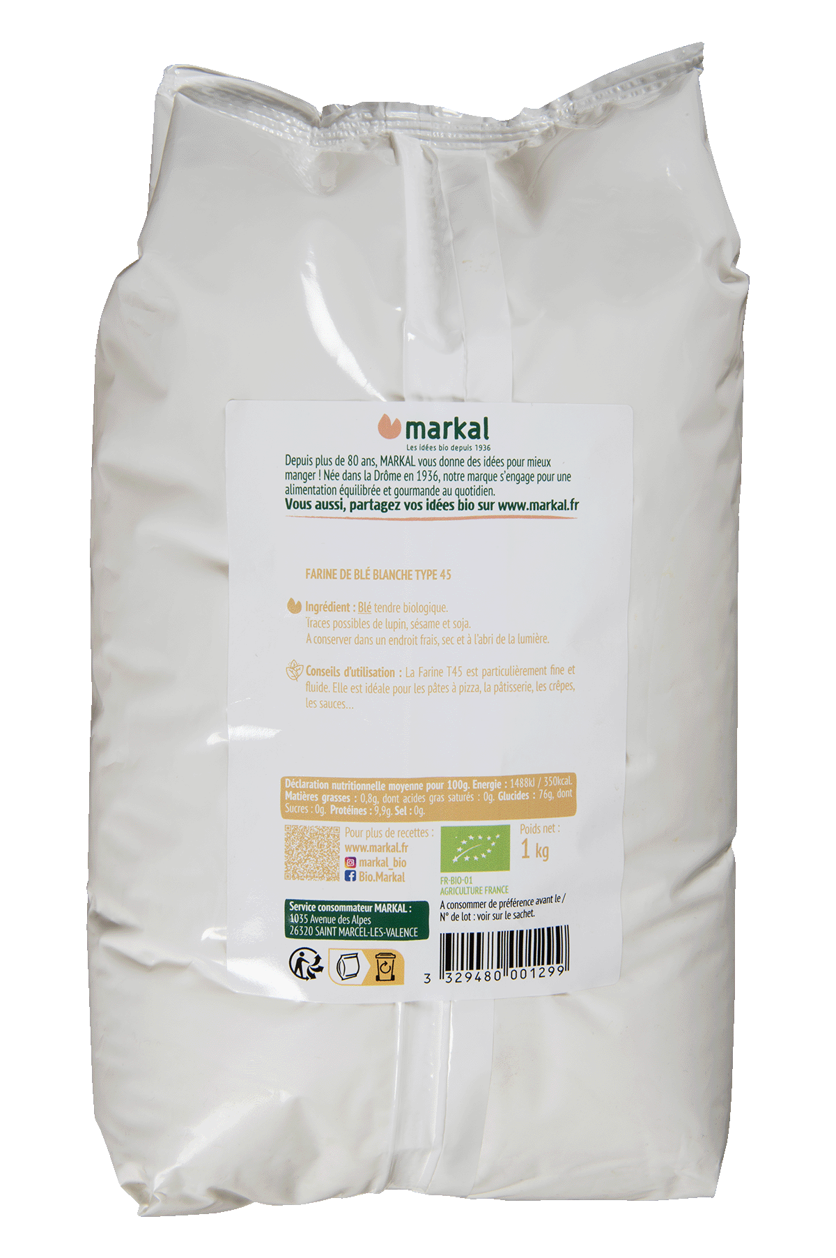 La farine T45 idéale pour les pâtes à pizza, les tartes, la pâtisserie, les crêpes ou encore les sauces.