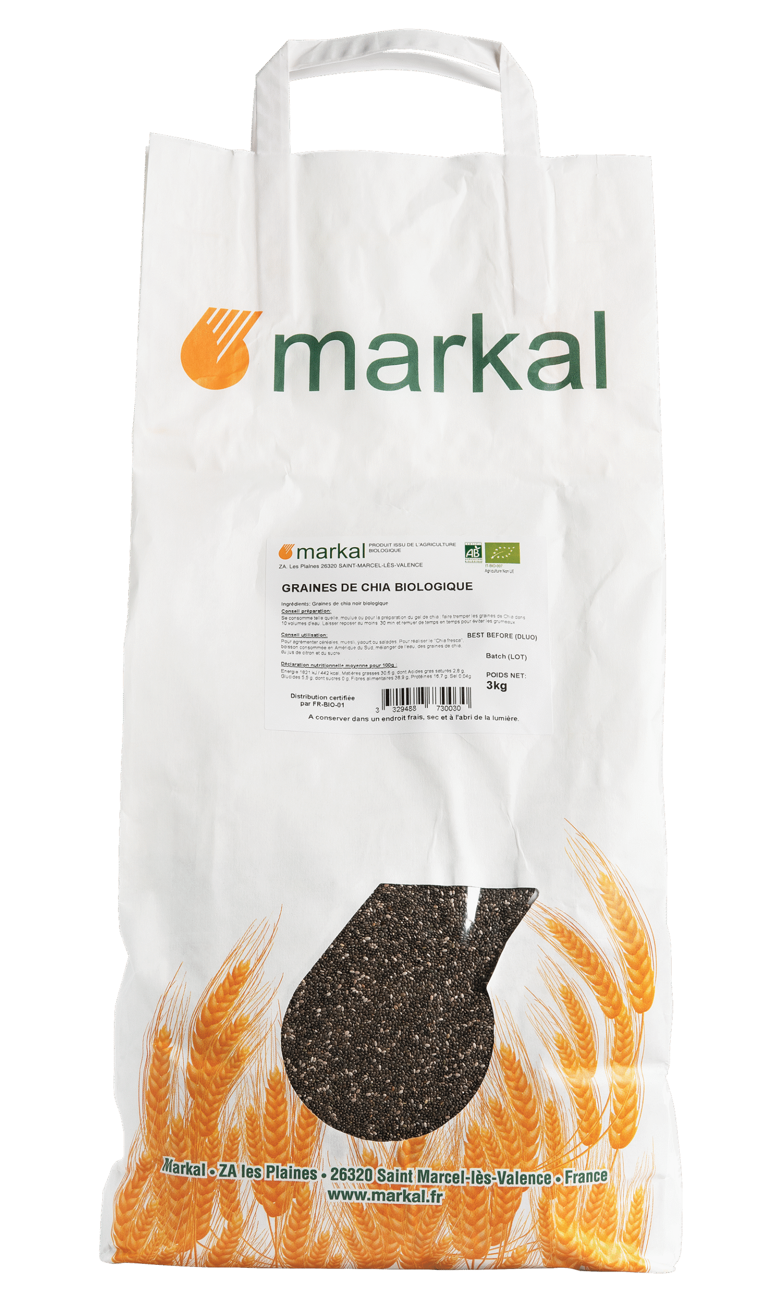 Le chia (Salvia Hispanica L.) est une plante de la famille des lamiacées d’origine mexicaine. Avec les haricots, le maïs et l’amarante, le chia constituait la base de l’alimentation des Aztèques et des Mayas. Chia signifie « force » en Maya. Les Aztèques l’utilisaient comme source d’énergie lors de leurs marches de 24h. Petites graines ovales (2mm) de couleur gris clair au goût frais et caractéristique.