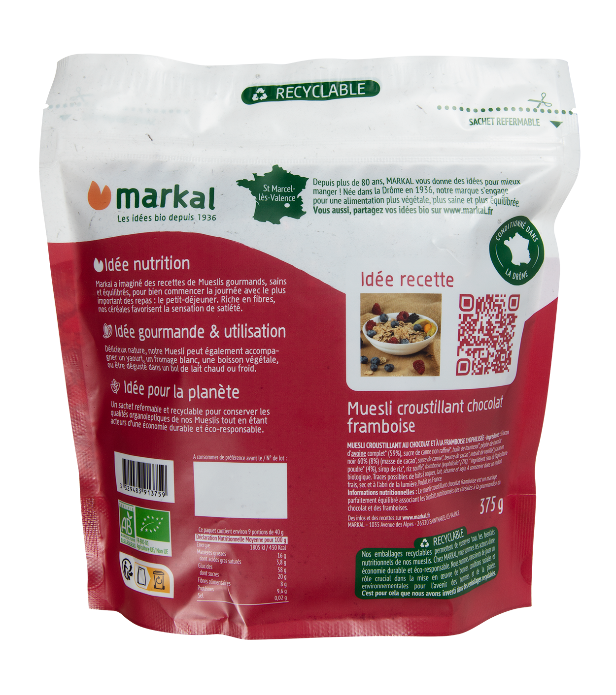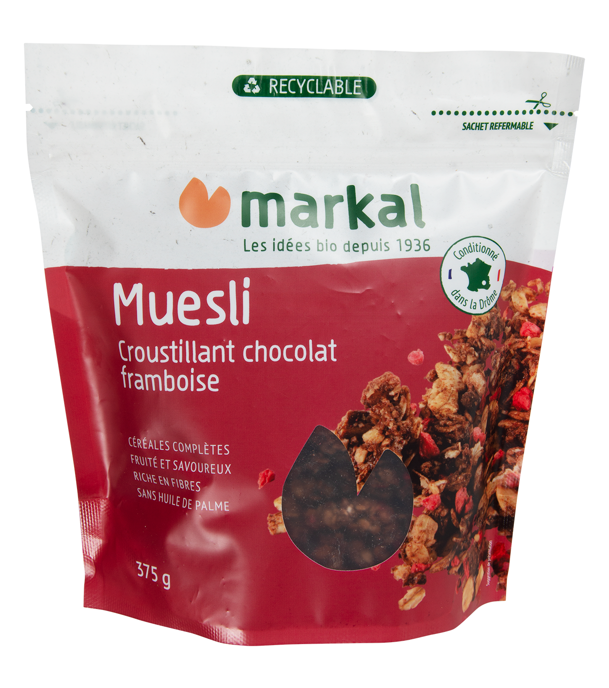 Pour un petit déjeuner fruité et plein de vitalité, découvrez le muesli croustillant aux framboises et au chocolat Ce savoureux mélange de flocons d’avoine et de blé, associé aux fruits et au chocolat, vous apportera l’énergie nécessaire pour bien commencer votre journée.