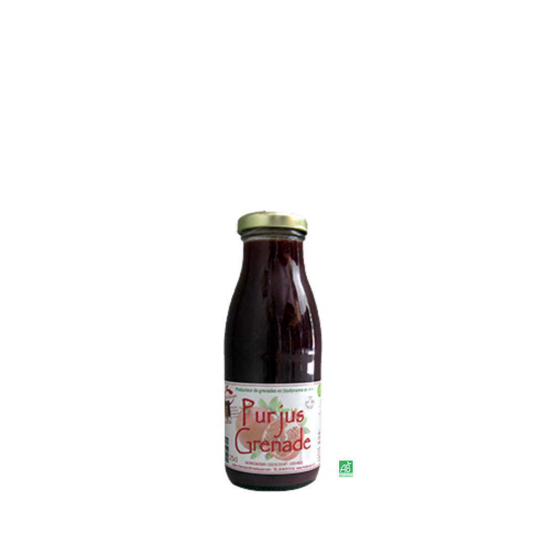C’est un mélange de 7 variétés de grenades françaises pour donner un jus coloré, sucré, acidulé mais non astringent car la membrane blanche de la grenade a été retirée avant pressage.