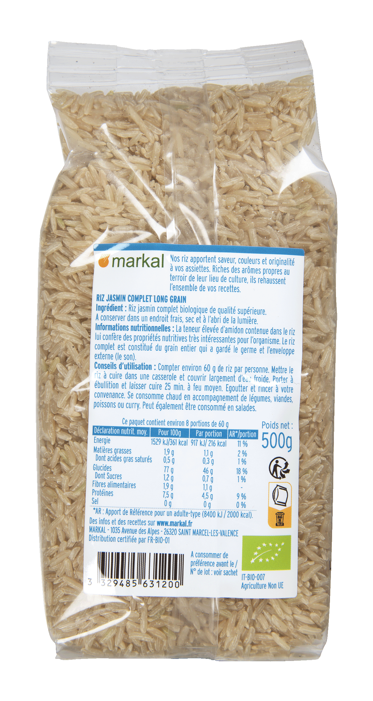 Riz Jasmin complet biologique de qualité supérieure.