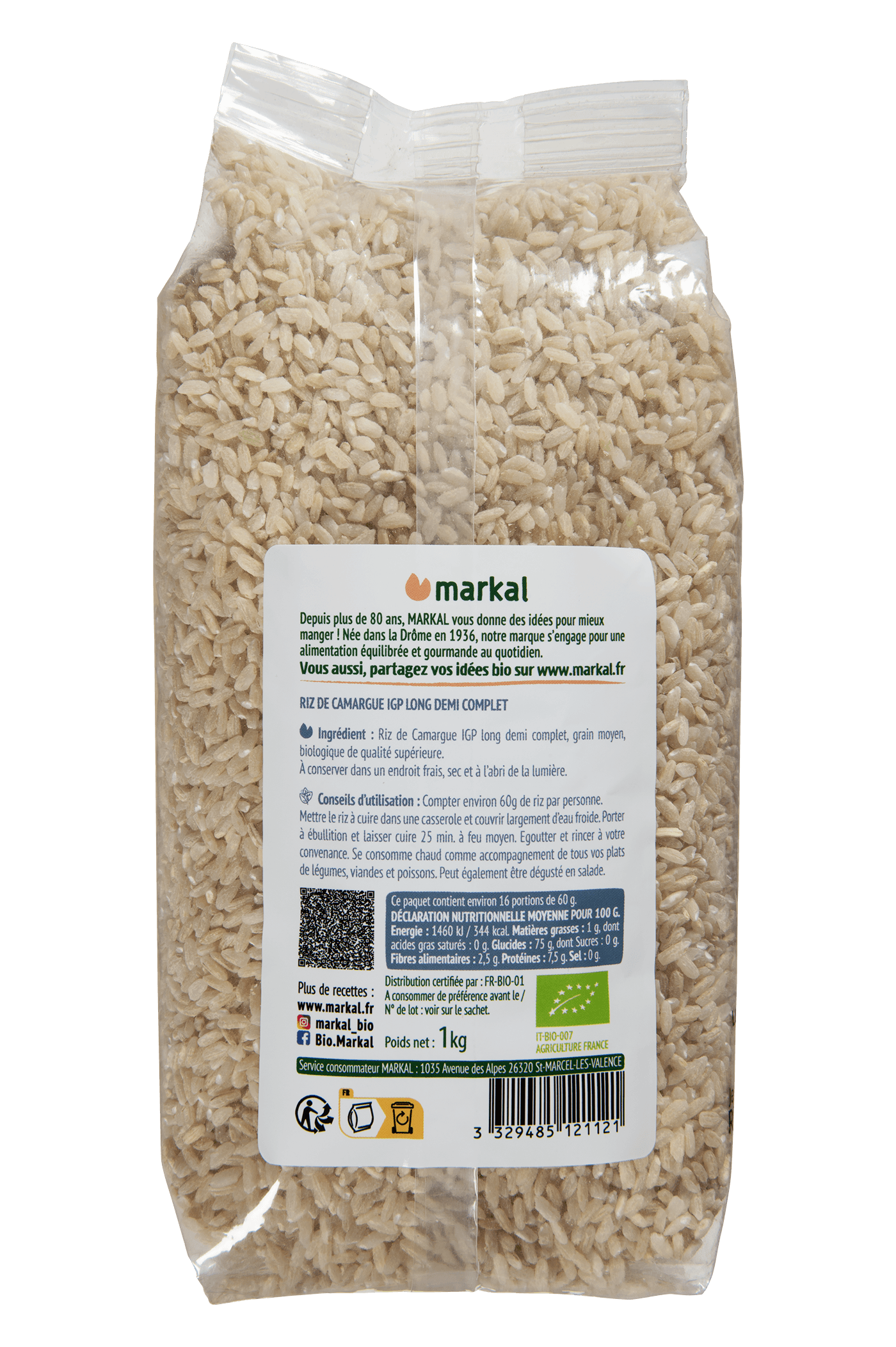 Riz de Camargue IGP long demi complet grain moyen biologique de qualité supérieure