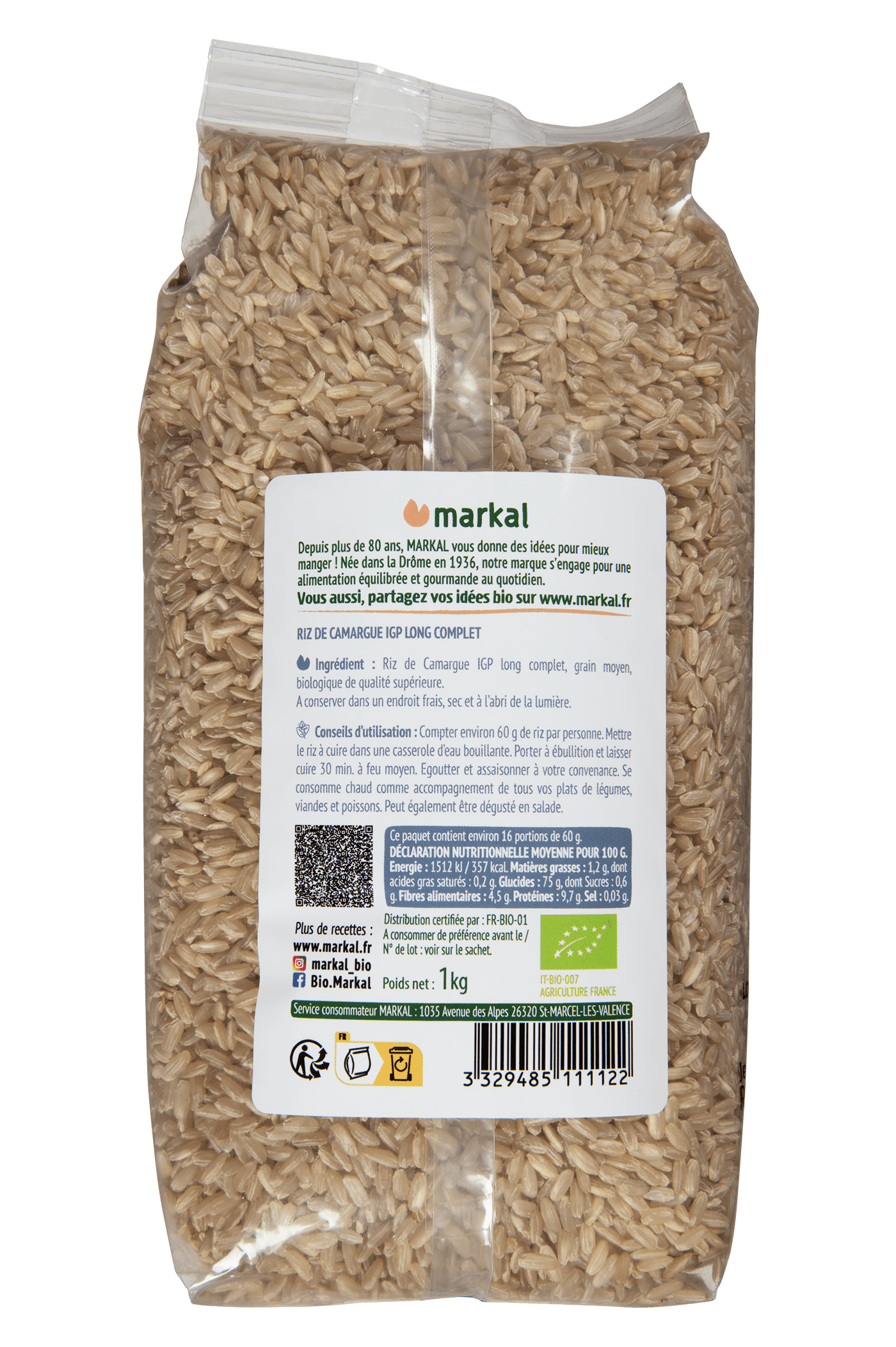 Riz de Camargue IGP long complet grain moyen biologique de qualité supérieure