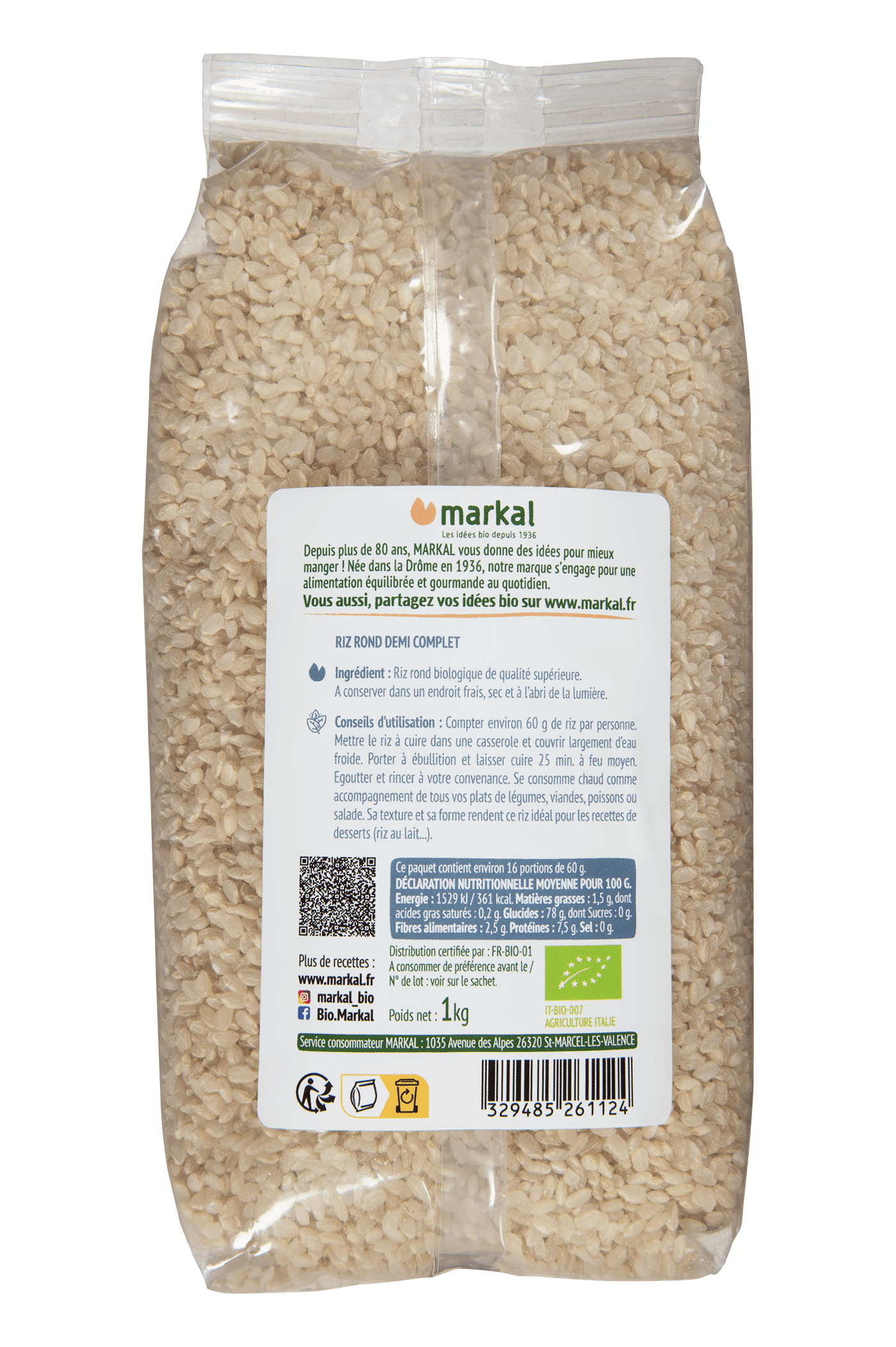 Riz rond demi complet 1kg x6