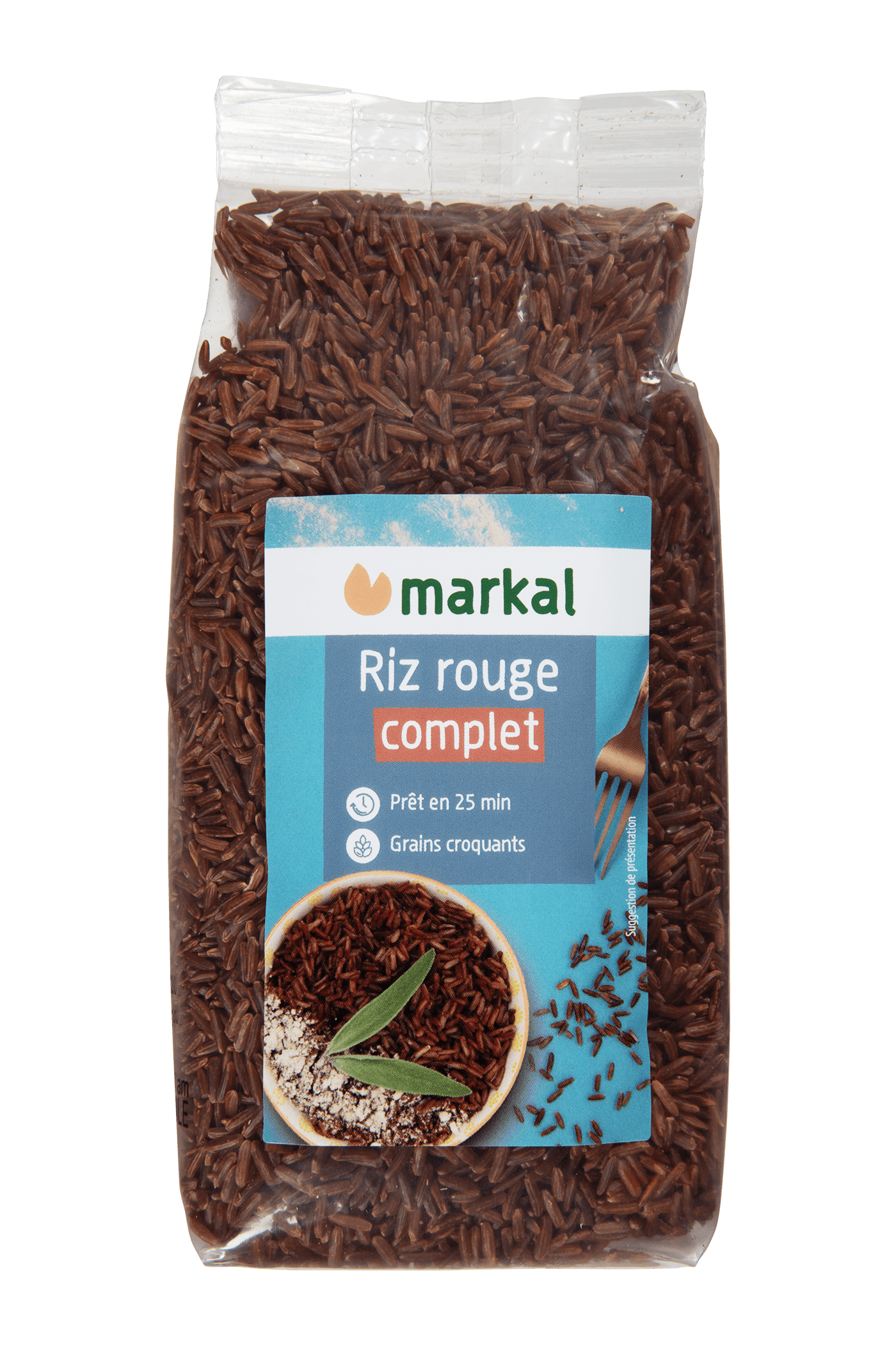 Le riz rouge est un riz thaï rouge et se présente comme du riz complet. Ce riz doit sa couleur rouge à la pellicule du son et il est le résultat d’une mutation spontanée, fruit du travail de la nature.