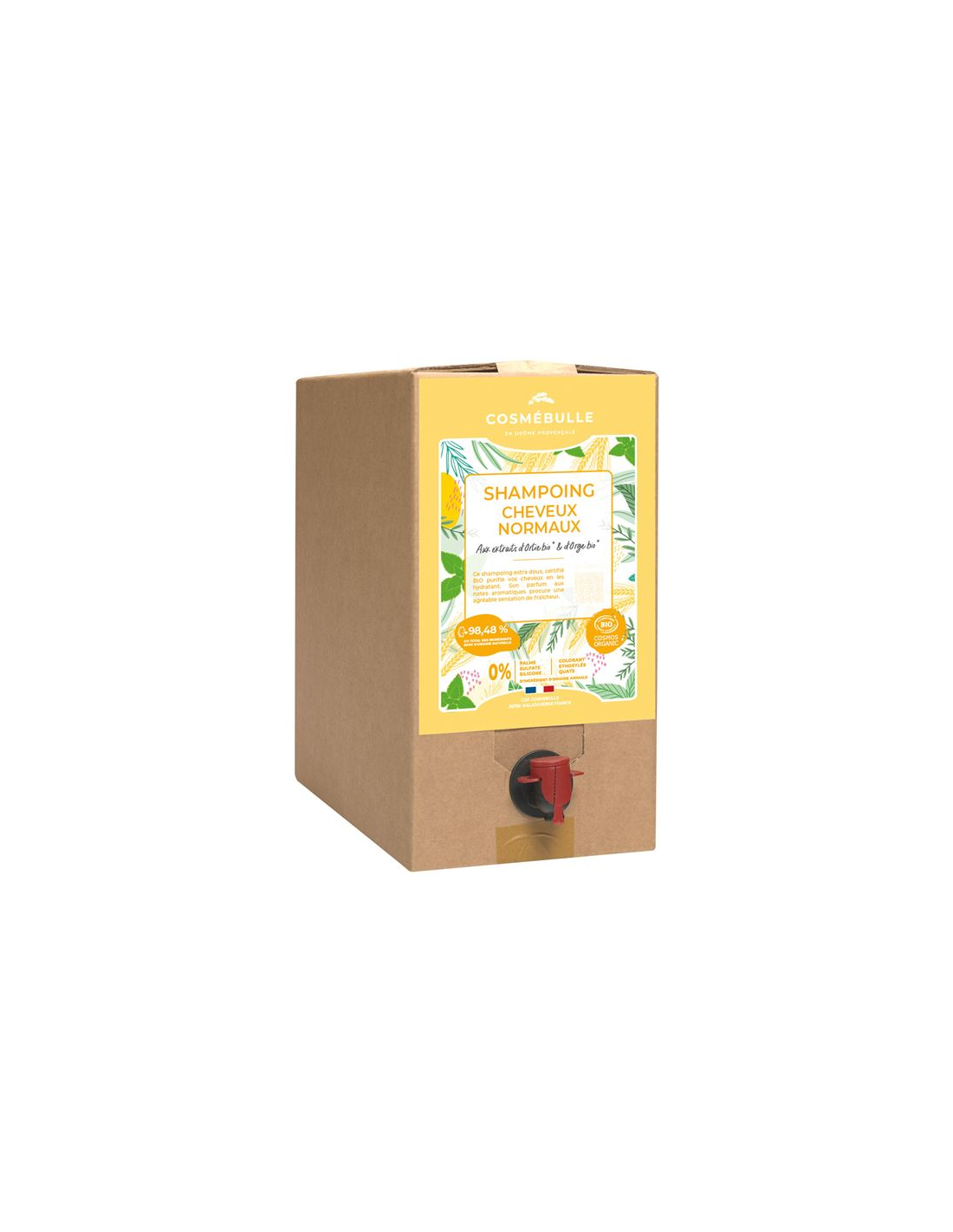aqua – hordeum vulgare stem water* – cocamidopropyl betaine – caprylyl capryl glucoside – decyl glucoside – coco glucoside – glyceryl oleate – glycerin – hortica dioica leaf extract* – xanthan gum – parfum – sodium benzoate – potassium sorbate – dehydroacetic acid – benzyl alcohol – citric acid – limonene *Issus de l’Agriculture Biologique 13,89% du total des ingrédients sont issus de l’Agriculture Biologique 97,76% du total des ingrédients sont d’origine naturelle 99,90% du total des ingrédients végétaux sont issus de l’Agriculture Biologique